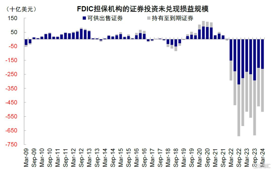 图表15:美国商业银行和存款机构证券投资的未兑现损益在4Q22达到6204亿美元