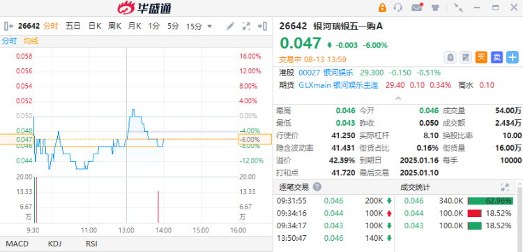 银娱、金沙将于本周四及五公布业绩,根据瑞银即市资金流,显著资金流入银娱、金沙好仓产品趁低捞底,如看好可留意银河认购 $26642.HK ,行使价41.25港元,25年1月到期,有效杠杆约8.6倍;