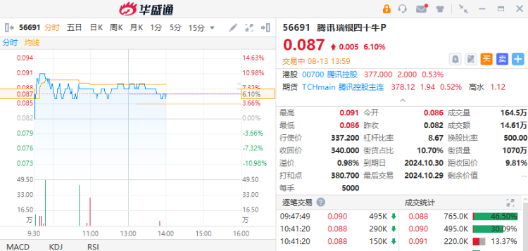 如看好可留意腾讯牛证 $56691.HK ,收回价340港元,行使价337.2港元,24年10月到期,有效杠杆约9.3倍;及阿里牛证 $64151.HK ,收回价72港元,行使价70.5港元,24年12月到期,有效杠杆约9.1倍。如看淡可留意腾讯熊证 $58292.HK ,收回价405港元,行使价407.8港元,26年12月到期,有效杠杆约14倍;及阿里熊证 $60669.HK ,收回价87港元,行使价88.5港元,24年12月到期,有效杠杆约8.2倍。