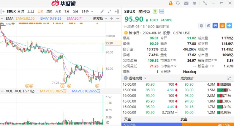 投资者相信他能重振公司。消息传出后,星巴克股价在周二收涨24.5%,有望创下该公司1992年IPO以来的最佳单日表现。尼科尔为墨式烧烤(CMG.US)前任首席执行官。与此同时,由于股东对失去这位长期担任首席执行官感到惋惜,墨式烧烤的股价下跌了7.5%。