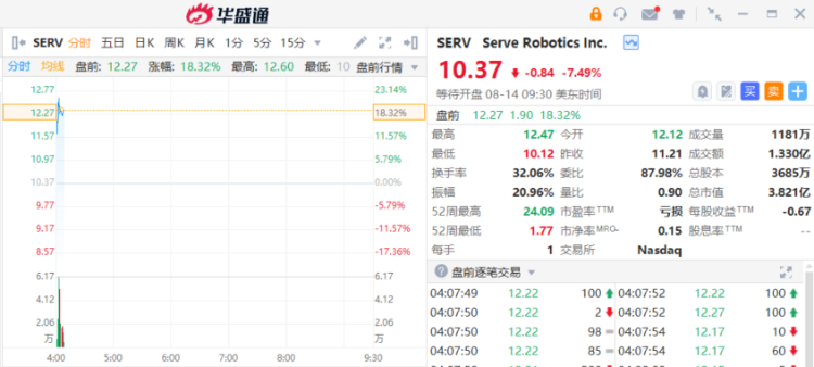 机器人公司Serve Robotics $SERV 盘前涨超18%,公司Q2销售额超市场预期。
