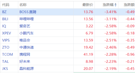 其中,Boss直聘、哔哩哔哩跌超3%,爱奇艺、小鹏汽车、好未来跌超2%。腾讯控股ADR跌超3%,腾讯Q2营收1611.2亿元(人民币,下同),同比增长8%;经调整净利润573.13亿元,同比增长53%。