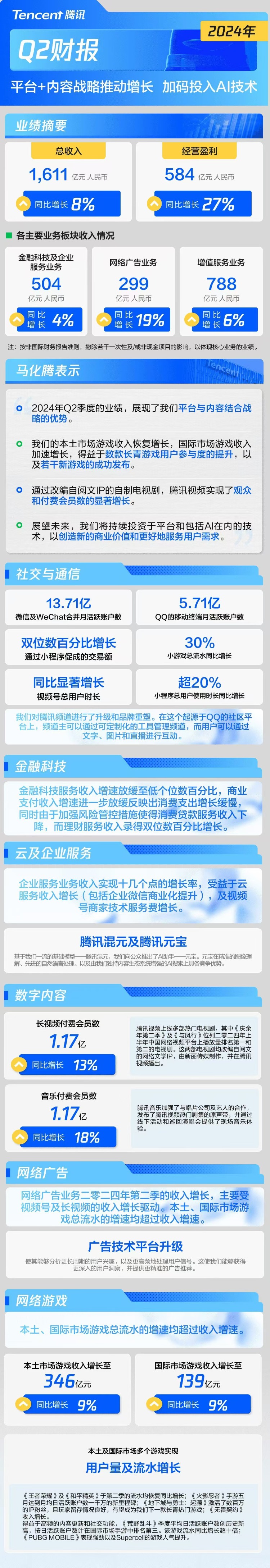 2024年Q2的业绩展现了腾讯平台与内容结合战略的优势。