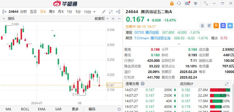 相反,如果想部署淡仓,可以留意腾讯认沽证 $25188.HK ,行使价333港元,11月中到期,同样提供逾10倍杠杆。