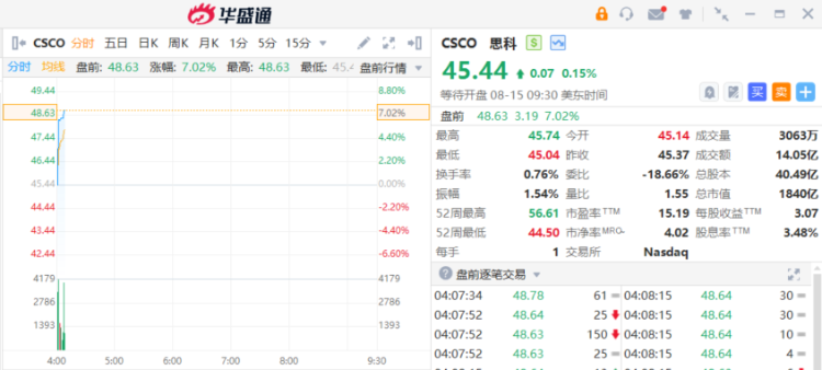思科盘前涨超7%,Q1业绩指引乐观+宣布全球裁员7%。