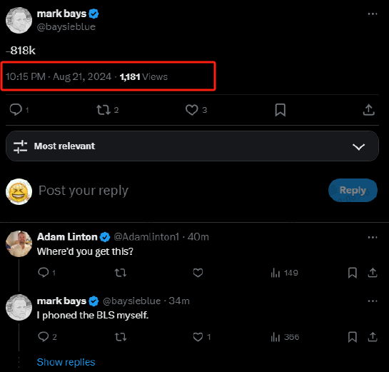美国劳工统计局原定于北京时间22:00公布2024年3月非农就业总人数的修订值,但实际上却延迟公布。在官网更新前,社交平台上早早就传播了就业人数被下修81.8万人的信息。