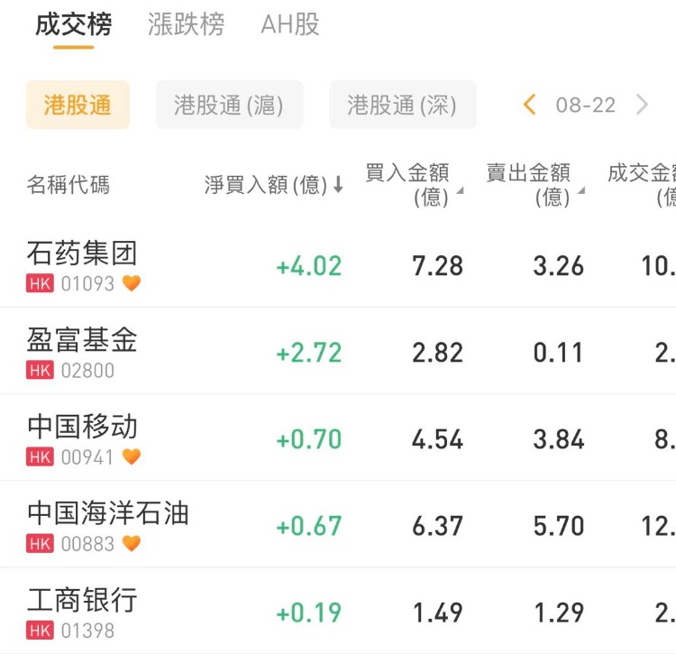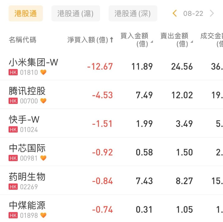 石药集团、盈富基金分别获南下资金净买入4.02亿港元、2.72亿港元;小米集团-W、腾讯控股、快手-W遭净卖出12.67亿港元、4.53亿港元、1.51亿港元。