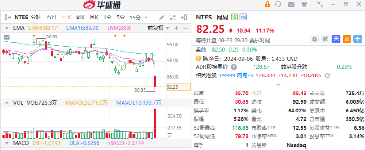 隔夜美股收盘,网易大跌超11%,承接昨夜美股跌势,今日港股网易继续大幅低开,盘中股价一度下跌逾14%,截至发稿,跌近13%,每股报124.7港元,最新市值4309亿港元。