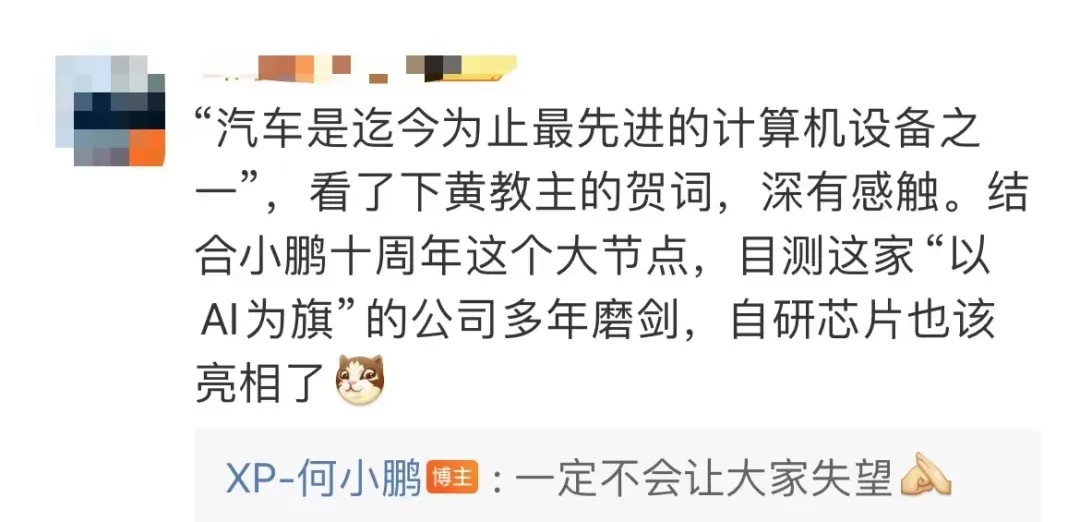 针对即将揭晓自研芯片的传闻,小鹏汽车董事长兼CEO也在个人微博账号中含蓄表示,“一定不会让大家失望”。