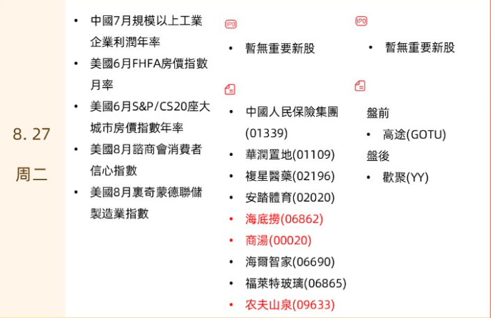 中国人民保险集团、华润置地、复星医药、安踏体育、海底捞、商汤、海尔智家、福莱特玻璃、农夫山泉