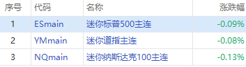 三大期指周三盘前小幅走低,截至发稿,纳指期货 $NQmain 跌0.12%,标普500指数期货 $ESmain 跌0.09%,道指期货 $YMmain 跌0.08%。