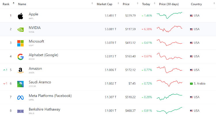 (全球上市公司市值排名,来源:companiesmarketcap)
