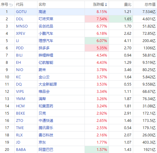 华盛资讯8月29日消息,美股盘初,热门中概股强势反弹,截至发稿,高途涨超8%,名创优品、小鹏汽车、理想汽车涨超6%,拼多多涨超5%,哔哩哔哩涨超4%,蔚来、金山云等涨超3%,京东、阿里巴巴涨超1%。ETF方面,2倍做多沪深中国互联网指数ETF $CWEB 涨超5%。