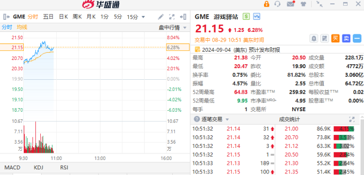 百思买大涨逾16%,消息面上,百思买二季度营收92.9亿美元,市场预估92.4亿美元;调整后每股收益1.34美元,市场预估1.16美元。该公司上调全年盈利指引,预计全财年调整后每股收益6.1-6.35美元,此前预计5.75-6.2美元。