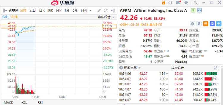 Affirm $AFRM 飙升逾33%,数据显示,该公司Q4营收同比增长48%至6.59亿美元,好于分析师预期的6.04亿美元;净亏损为4510万美元,较上年同期的净亏损2.06亿美元大幅收窄;调整后每股亏损0.14美元,好于分析师预期的每股亏损0.51美元。