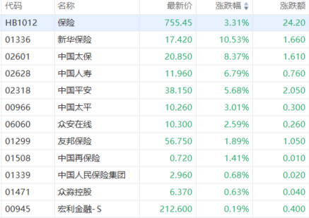 今日港股保险股多数走强,其中新华保险表现居前。截至发稿,新华保险涨超10%,中国太保涨超8%,中国人寿涨超6%,中国平安涨超5%,中国太平涨超3%。