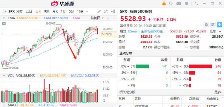 华盛资讯9月4日讯,美国周二披露的低迷制造业数据令经济衰退担忧重燃,导致美股在九月第一个交易日“开门黑”,三大指数重挫,纳指暴跌超3%。