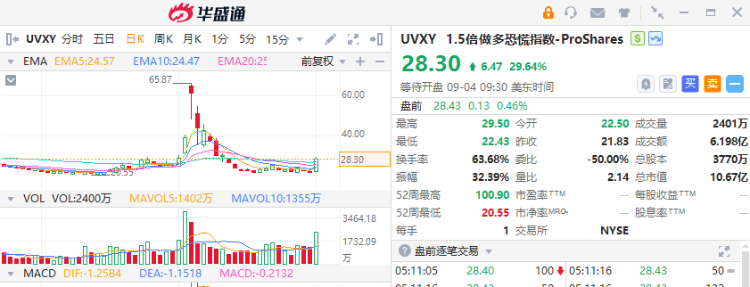 1.5倍做多恐慌指数ETF $UVXY |