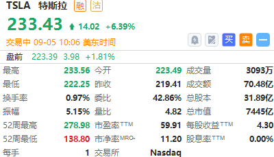 特斯拉涨幅扩大逾6%,公司预计2025年一季度在中国和欧洲提供全自动驾驶(FSD),有待监管批准。
