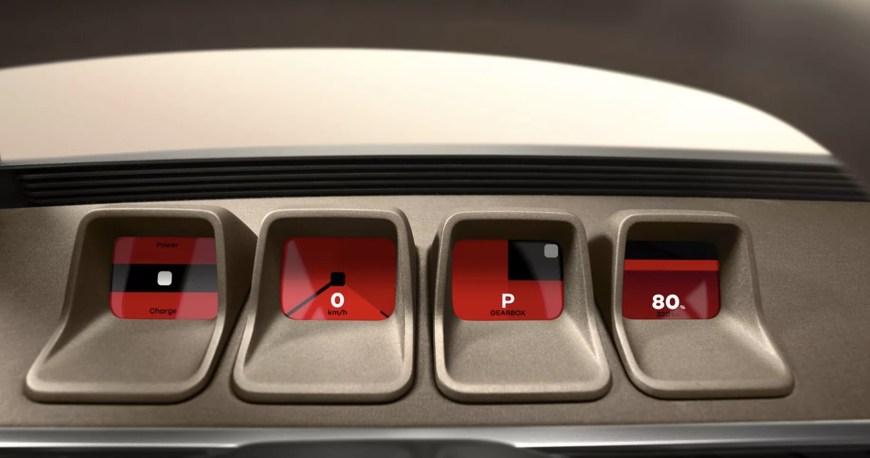 复古与科技结合:四个并行排列的方形仪表盘取代了传统仪表盘、中控台下方则设有尺寸可观的中控屏。