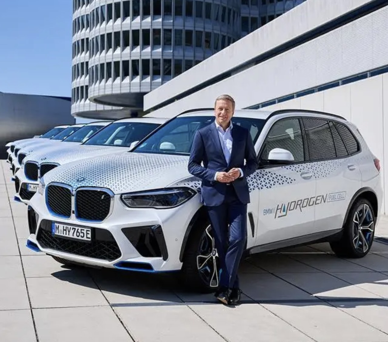 宝马集团董事长齐普策与宝马氢燃料电池车,图片来自宝马