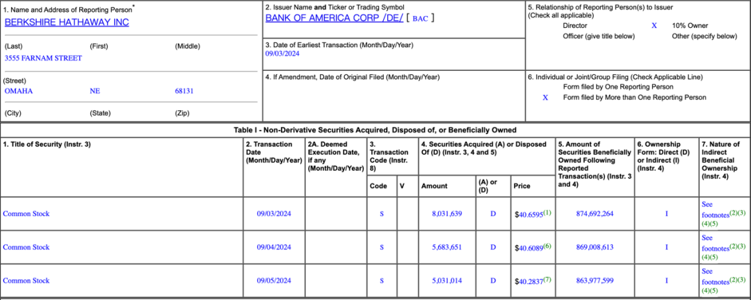 (伯克希尔本周减持美国银行记录来源:SEC)