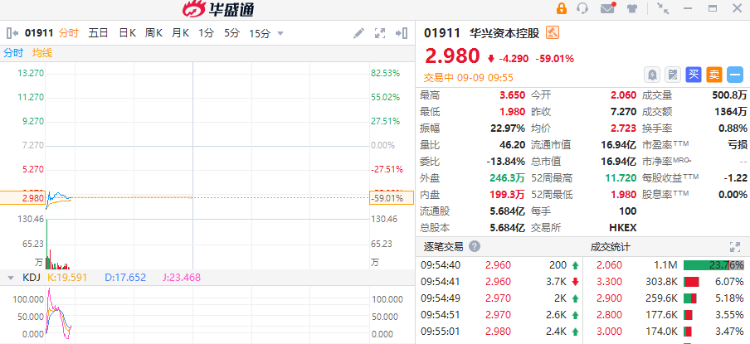 华兴资本控股(01911)停牌近一年半,今日早盘复牌低开近72%。截至发稿,跌59%,报2.98港元,成交额1364万港元。