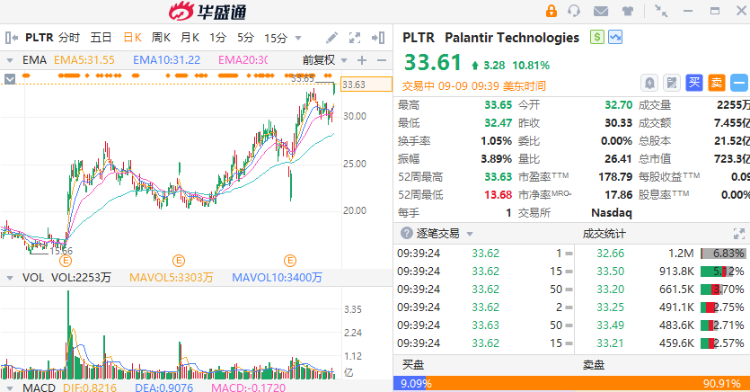 明星科技股普涨,截至发稿,Palantir $PLTR 暴涨超10%,戴尔涨超5%,特斯拉均涨超3%,亚马逊涨超2%,微软、谷歌均涨超1%。