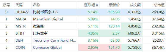 华盛资讯9月9日讯,比特币上涨带动加密货币板块走高,截至发稿,Coinbase涨超3%,Marathon Digital $MARA 涨超5%、微策略涨超5%。ProShares比特币策略ETF $BETE 上涨3.8%。