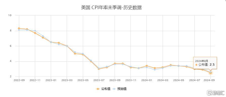 美国8月CPI同比上升2.5%,连续第5个月回落,预估为2.5%,前值为2.9%;美国8月CPI环比上升0.2%,预估为0.2%,前值为0.2%。