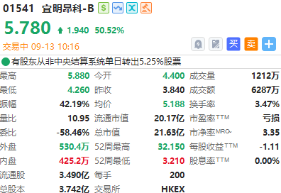 宜明昂科-B大涨逾50%,近期向合作方收取500万美元,未来将收取最多3500万美元付款。