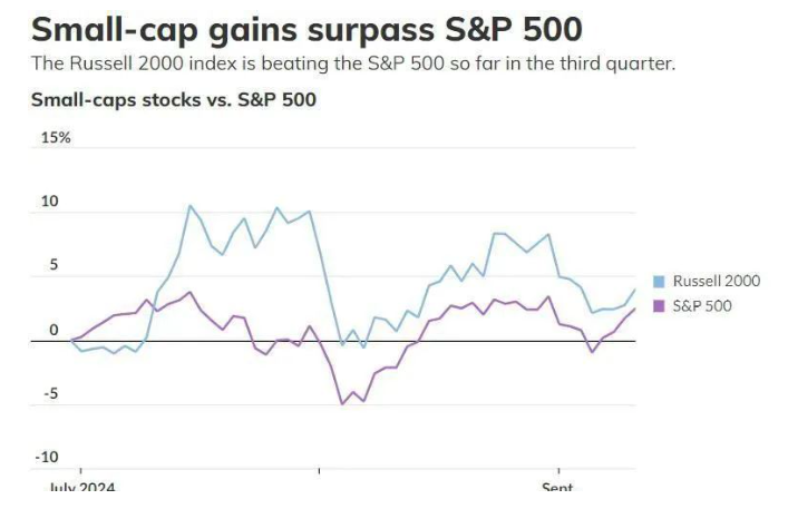 事实上,早在今年夏天美联储给出降息可能性时,小盘股就出现过一次强劲表现。