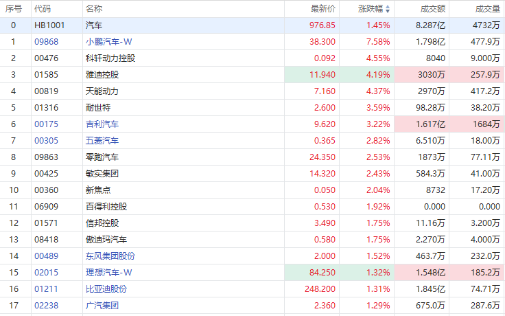 华盛资讯9月20日讯,港股早盘,汽车股集体大涨,截至发稿,小鹏汽车-W涨超7%,吉利汽车涨超3%,蔚来-SW、五菱汽车、零跑汽车涨超2%,比亚迪股份、理想汽车、广汽集团涨超1%。