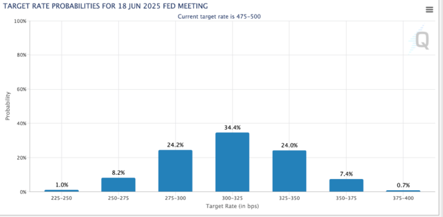图:到2025年年中,市场对于美联储政策利率分布的预期