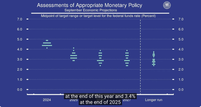 图:最新公布的点阵图显示到2025年年底“预计”政策利率在3.4%。