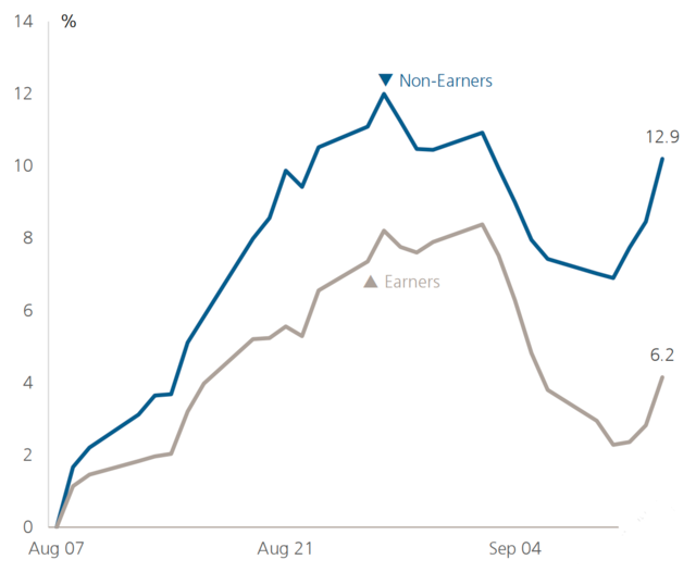 图:罗素2000里面的非盈利企业长久以来股价涨幅弹性大于盈利企业,在大幅降息情景下更是如此