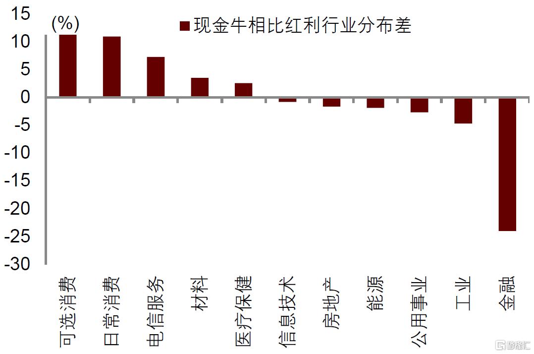图表10:“现金牛”相对中证红利在消费和电信行业有更多的暴露