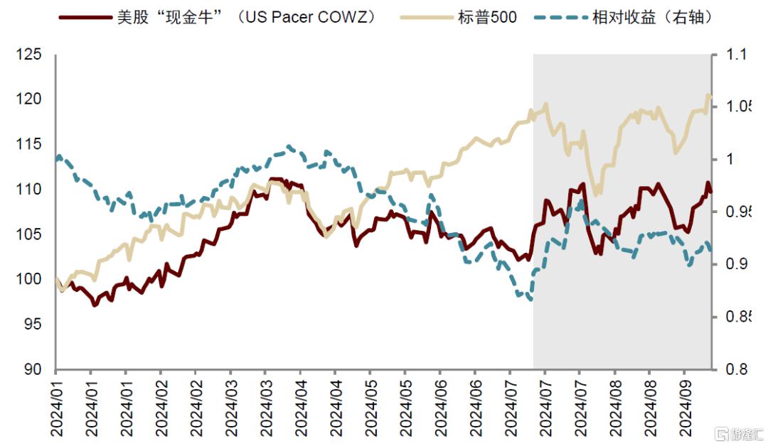 图表1:美股7月中旬高波动以来,美股现金牛指数相较大盘保持韧性