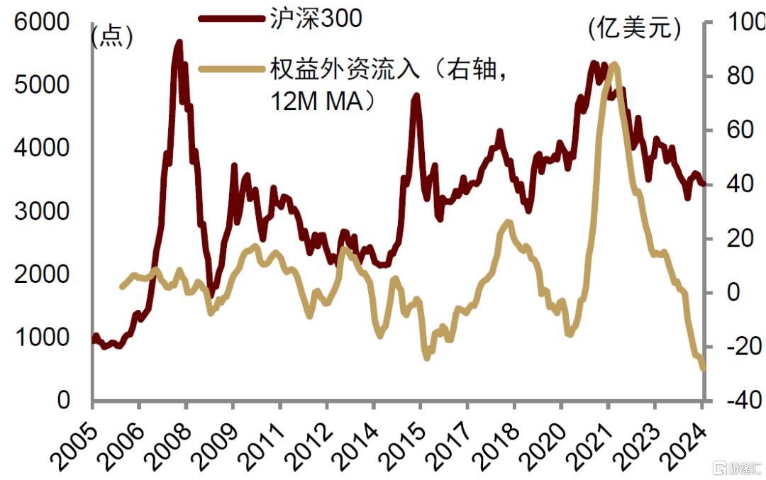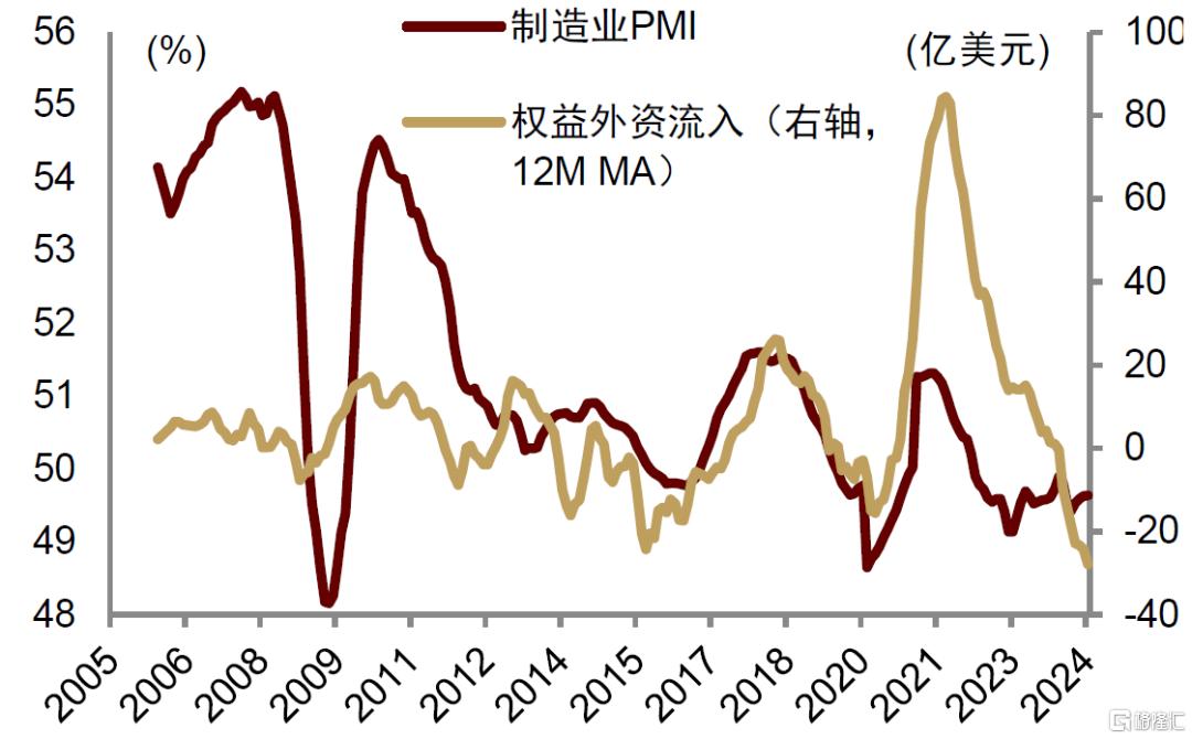 9月美联储大概率开启浅降息周期,流动性改善幅度恐有限,A股关键仍在国内基本面。一方面,美联储降息或边际改善当前权益市场外资流出趋势,但外资流入和国内市场关键仍在国内基本面和政策取向(图表17至图表18)。在当前经济慢复苏背景下,“现金牛+央国企”组合攻守兼备,享有更高的确定性溢价。另一方面,美国经济“软着陆”甚至“不着陆”利好国内外需敞口较高或增速较快的标的,其中可选消费、电信服务、能源资源等现金牛行业海外营收占比较高(图表20)。建议继续关注美国顺周期对A股的外溢和拉动,具体关注两条主线:1)反映家庭部门需求韧性的耐用品,如五金水暖、家具家居、家用设备等;2)反映设备投资和制造业周期的计算机电子设备、工业设备、化学制品、煤炭石油制品等。