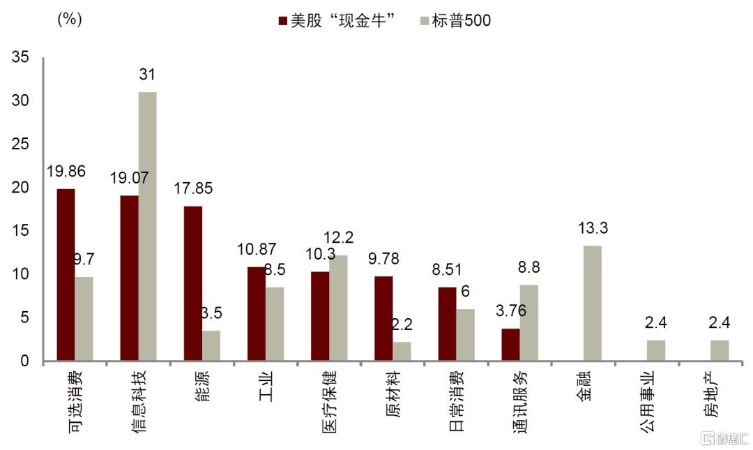 图表7:美国现金牛指数相比于标普500指数超配了顺周期行业