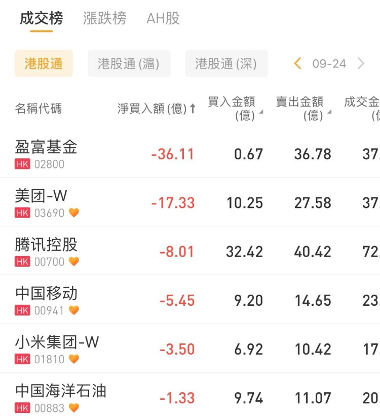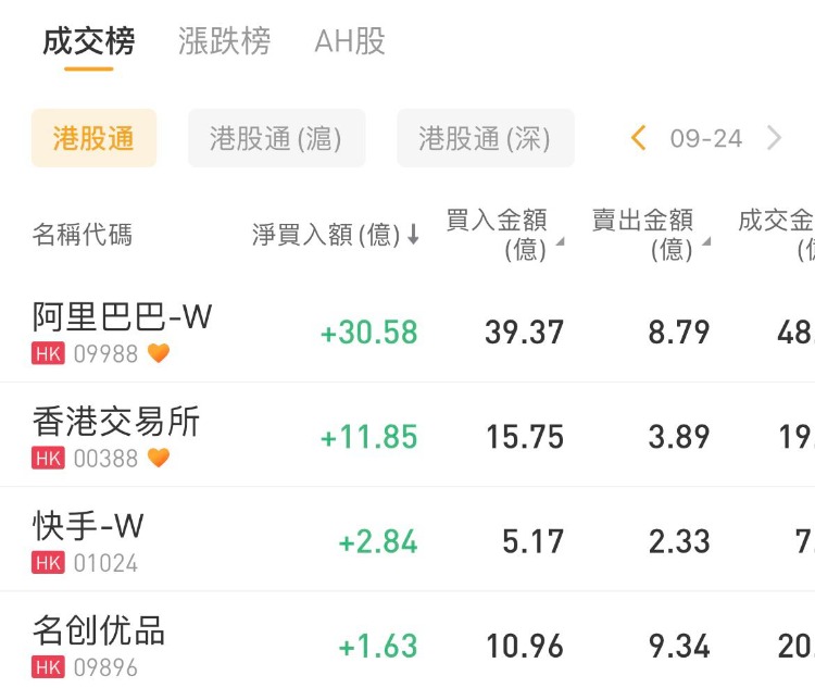 阿里巴巴-W、香港交易所、快手-W分别获南下资金净买入30.58亿港元、11.85亿港元、2.84亿港元;盈富基金、美团分别遭净卖出36.11亿港元、17.33亿港元。