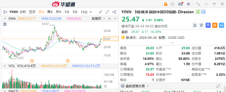 中概股集体飙涨,京东涨超7%,拼多多、阿里巴巴涨近5%;中国大盘股ETF $FXI 涨逾4.5%,三倍做多富时中国50ETF $YINN 暴涨16%。