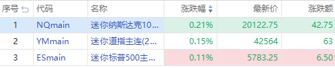 美股三大股指期货在周二盘前小幅走高,截至发稿,纳指期货 $NQmain 涨0.21%,标普500指数期货 $ESmain 涨0.15,道指期货 $YMmain 涨0.11%