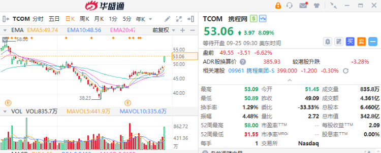 中概股盘前集体回调,中国大盘股ETF $FXI 跌近3%,截至发稿,携程网跌超6%,哔哩哔哩、小鹏汽车跌超5%,阿里巴巴、拼多多跌超2%,蔚来、京东跌超5%。