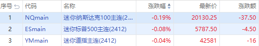 美股三大股指期货在周二盘前小幅走低,截至发稿,纳指期货 $NQmain 跌0.19%,标普500指数期货 $ESmain 跌0.08%,道指期货 $YMmain 跌0.04%