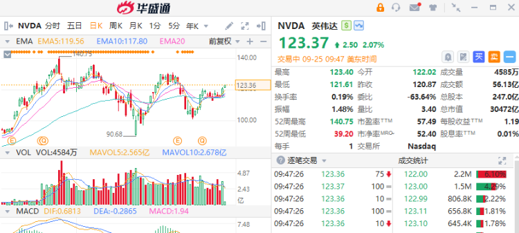 明星科技股涨跌不一,英伟达再涨2%,黄仁勋600万股减持计划提前完成;Meta涨超1%,旗下首款AR眼镜今夜亮相;苹果跌1%,数据显示中国8月份销售额下降;