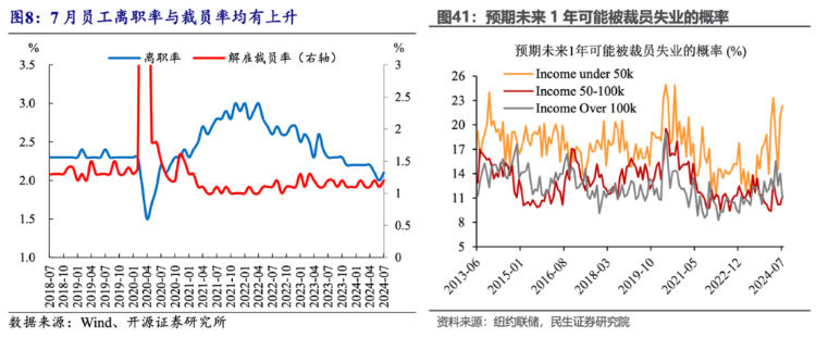 现在美国裁员率低,但员工被裁员预期提升,且企业招聘率也在下降,这一局面可能很难长久。