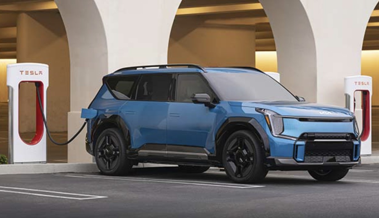 KIA EV9在美国特斯拉超充站充电(来源:electriccarsreport)