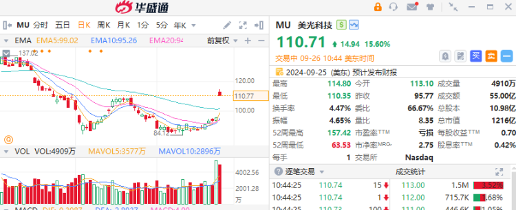 周四美股盘前,美光股价大涨逾17%,并带动了西部数据(WDC.US)和希捷科技(STX.US)上涨。