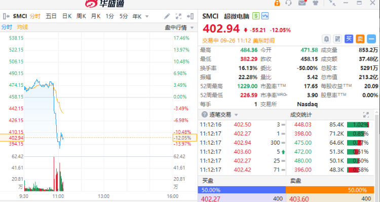 超微电脑突发跳水逾12%,一度再次触发熔断,据华尔街日报报道,超微电脑因涉嫌会计违规而遭调查。
